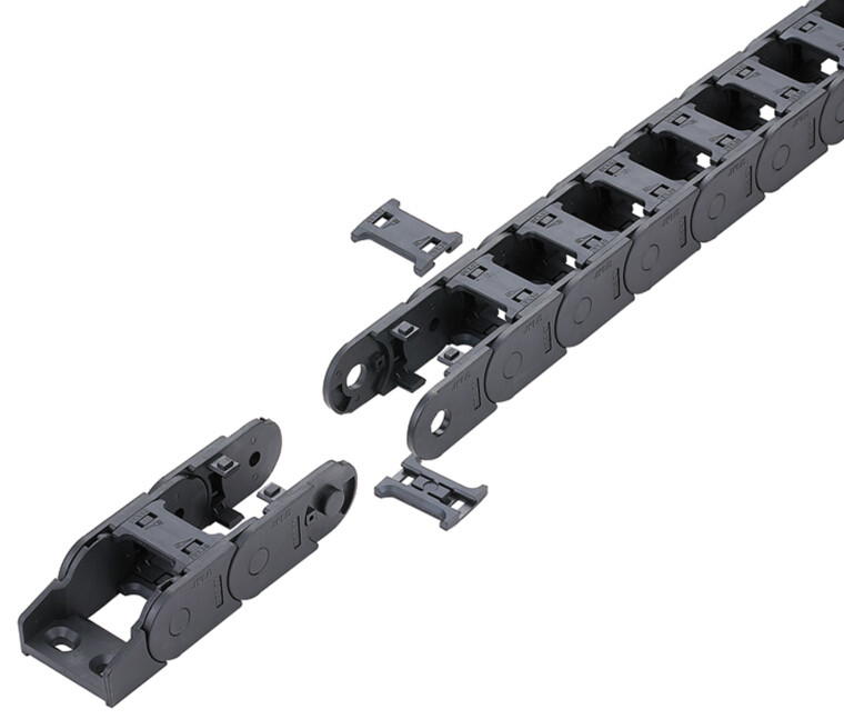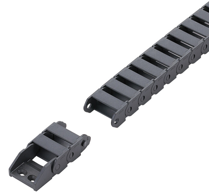 尼龍拖鏈是塑料拖鏈的一種,使用在往復運動的場合,能夠對內置的電纜、油管、氣管、水管等起到牽引和保護作用。
