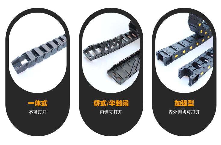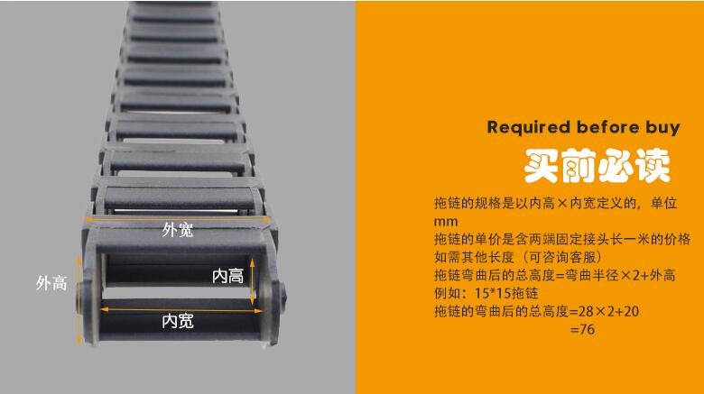 拖鏈型號(hào) | 內(nèi)高X內(nèi)寬 | 外高X外寬 | 彎曲半徑 | 樣式 | 接頭尺寸 |